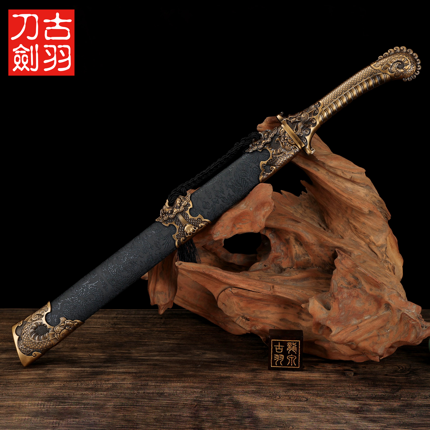 龙泉古羽刀剑鸱吻战刀短刀高锰钢金属柄弯刀霸气大刀装 饰刀未开刃