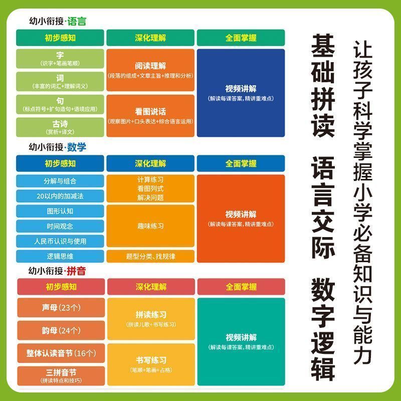 拼音数学语言早教学练评用 一本搞定幼小衔接 全3册 幼小衔接教材全套一日一练语文语言拼音数学幼儿园课本幼升小练习 官方正版