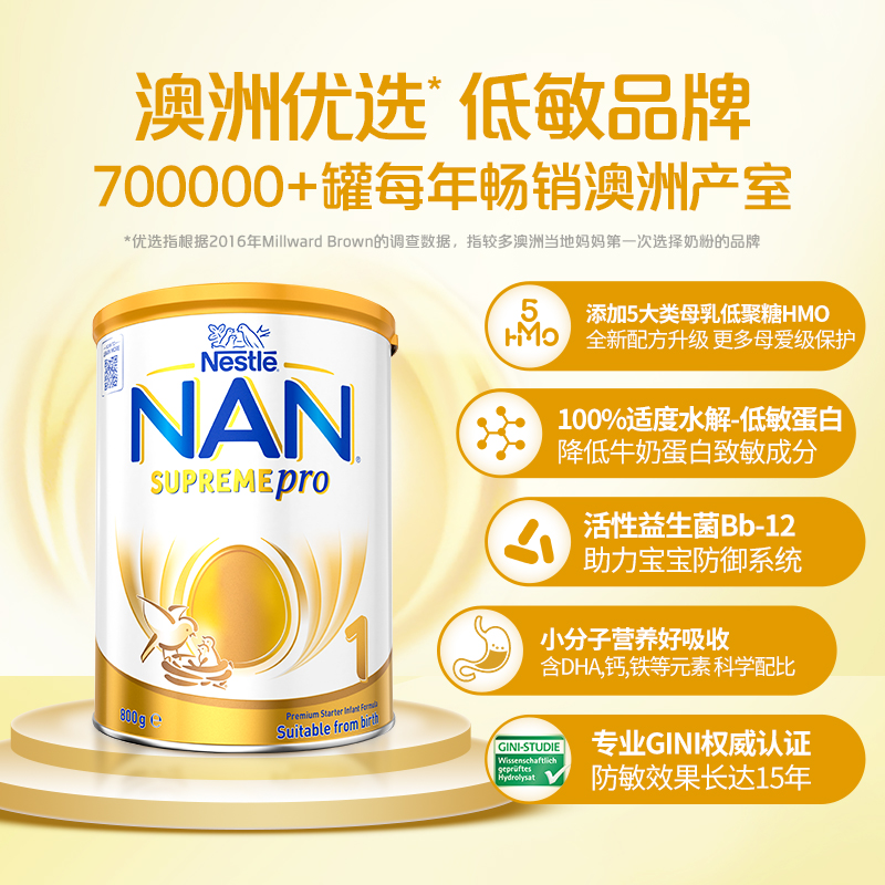 Nestle NAN雀巢能恩全护1段350g6HMO益生菌适度部分水解低敏奶粉
