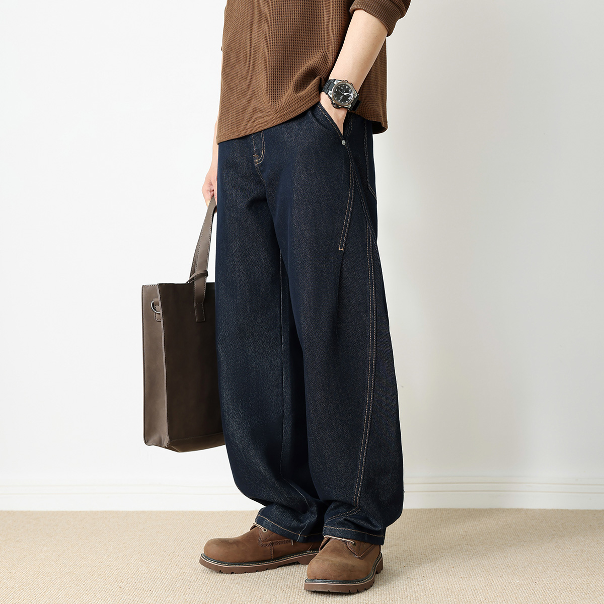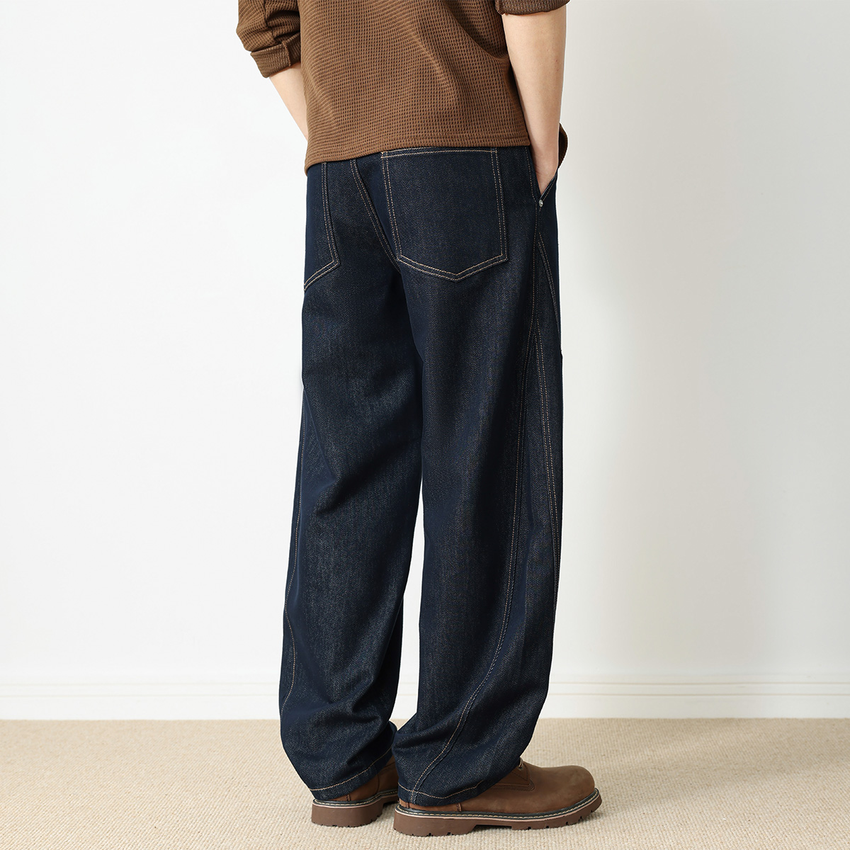 2025冬新款 王安宇同款 宽松弧形裤 男做旧复古阔感弯刀裤 森马牛仔裤