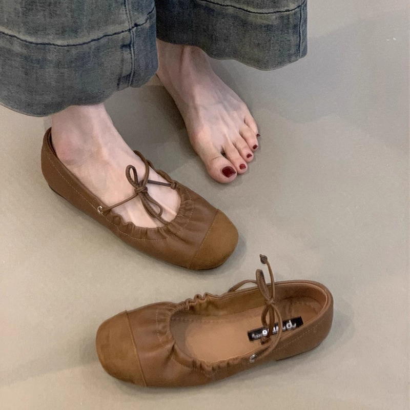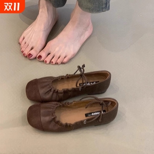 软底玛丽珍鞋 森女文艺褶皱奶奶鞋 女2025新款 复古浅口平底芭蕾单鞋