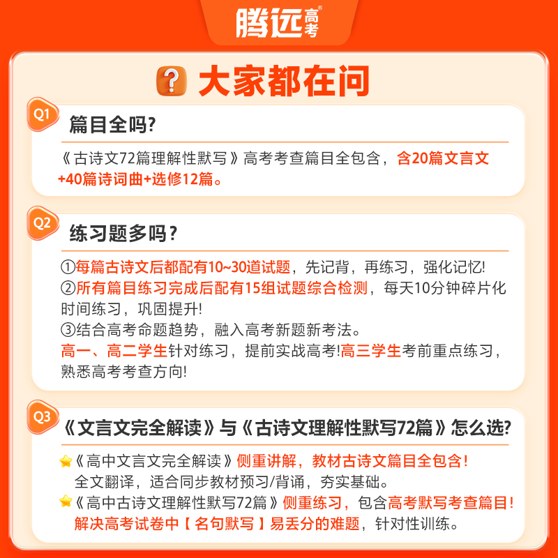 2026腾远高中必背古诗文72篇理解性默写全国通用高一二三适用实词详解文言文翻译