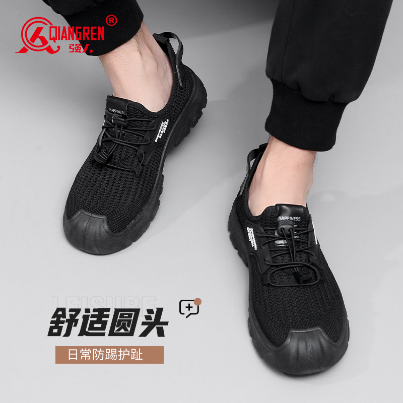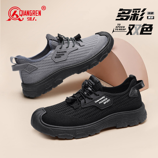 潮流黑色百搭轻便软底透气跑步鞋 强人3515男鞋 飞织网面休闲运动鞋