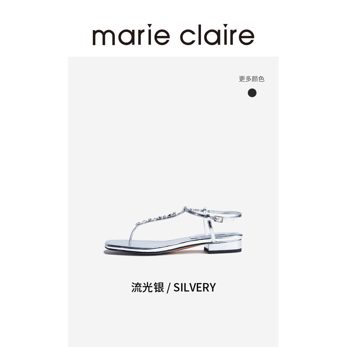 软糯脚感marieclaire女鞋 MC女鞋 流光银金属牛皮水钻T带凉鞋