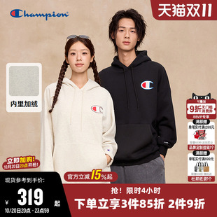 Champion冠军卫衣女冬季 情侣刺绣logo纯棉连帽休闲运动加绒上衣男