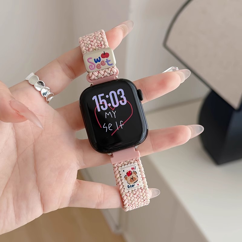 细款 7可调节磁吸iWatch6 se2女ultra腕带 苹果手表表带插图小熊适用于可爱s10编织尼龙s9透气applewatch9