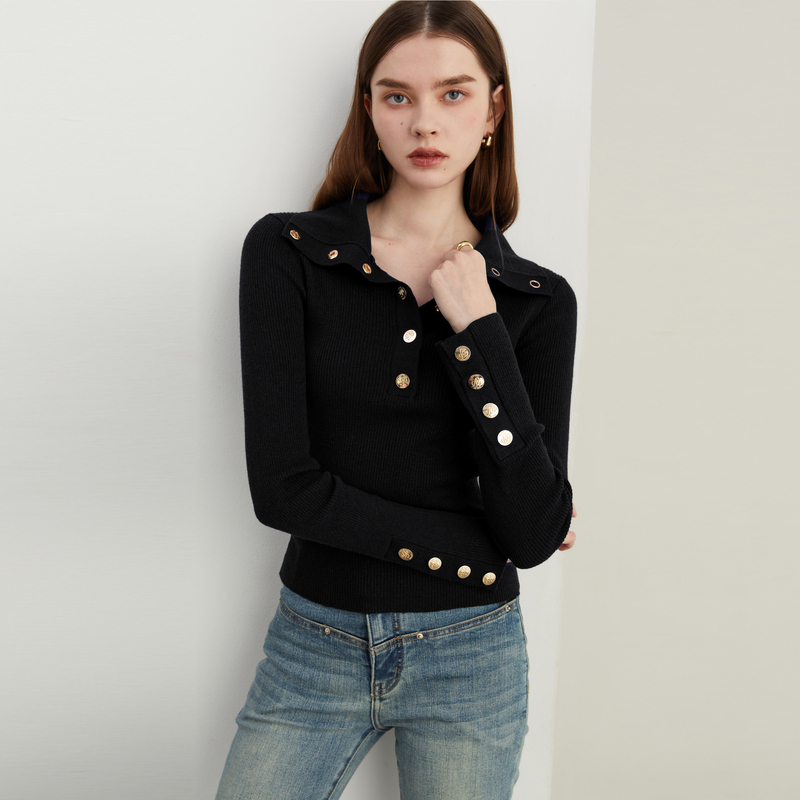 Lilbetter高密厚实老钱风小翻领毛衣男女同款 宽松POLO领针织衫