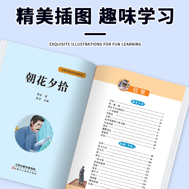 语文书目7七上青少年版 课外书初一课外阅读书籍名著配套人教版 白话文课外阅读书籍名著 七年级上册必读正版 朝花夕拾鲁迅原著正版