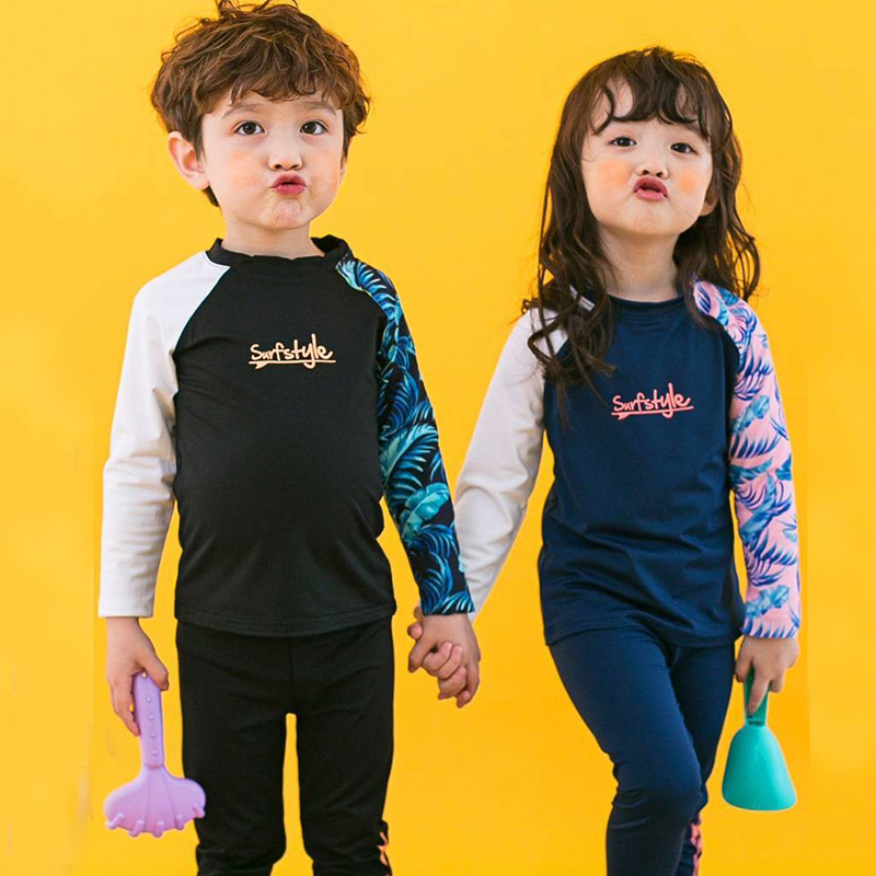 三件防晒速干套装 长裤 中小童保暖游泳衣 儿童泳衣男童女童长袖 新款