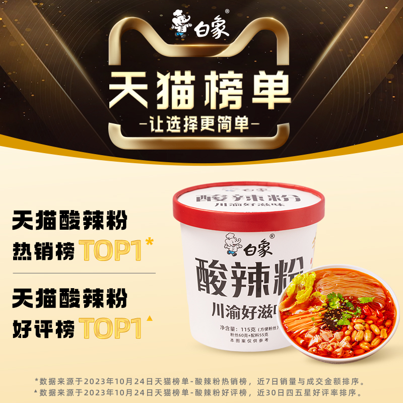白象卤蛋酸辣粉桶装 重庆风味免煮夜宵粉丝米线方便速食品官方正品