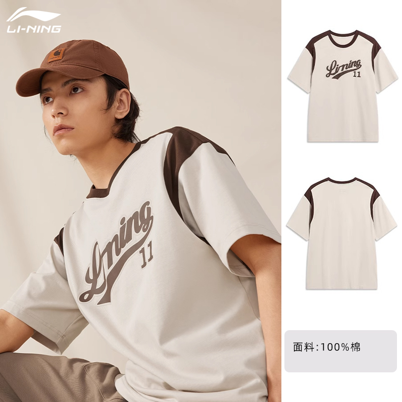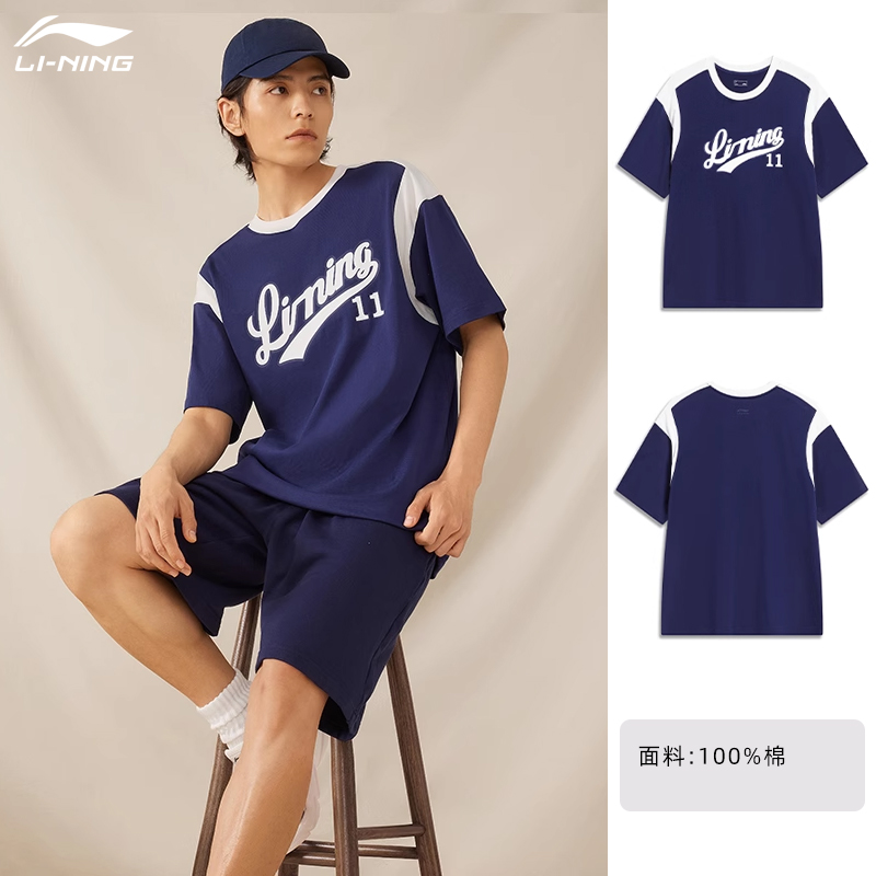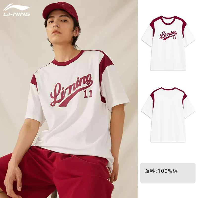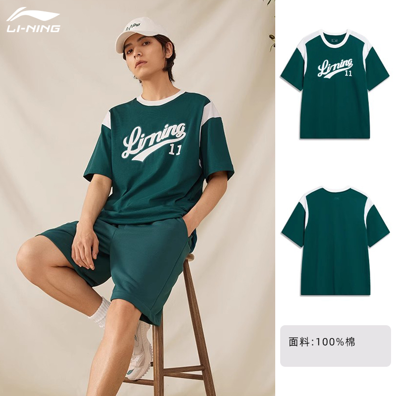 宽松运动时尚 李宁纯棉短袖 新款 学生情侣圆领同款 T恤男女2024夏季