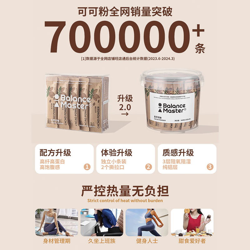 balancemaster均衡大师纯生可可粉未碱化天然热巧克力冲饮量贩装
