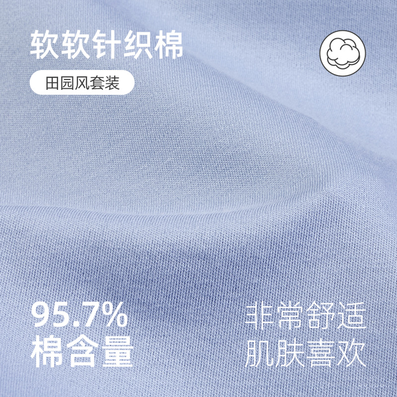 针织纯棉田园女士家居服套装 达尔丽V领长袖 春款 2024新款 睡衣女款