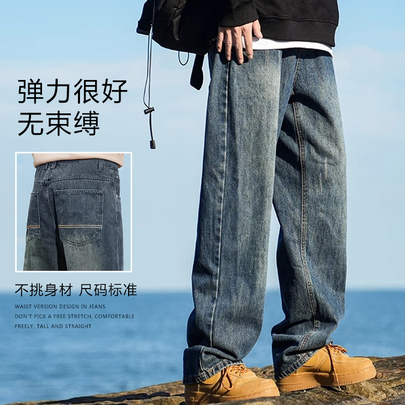 锥形牛仔裤 潮牌休闲加绒裤 男士 春季 子 春秋直筒宽松2025新款 美式