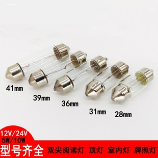 汽车阅读灯车内室内车顶灯后备箱灯牌照灯双尖卤素LED灯泡12V24V