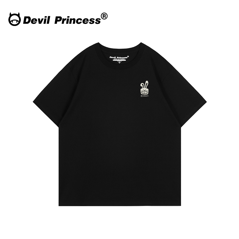 半袖 纯棉打底衫 上衣 宽松大版 街头风卡通潮牌深灰色正肩t恤女短袖