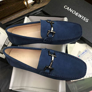 男鞋 麂皮豆豆鞋 真皮马衔扣高级休闲一脚蹬乐福 新款 CW2025春季