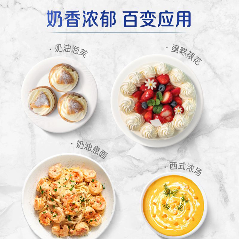 安佳进口动物淡奶油250ml 蛋糕蛋挞裱花专用稀奶油 家用烘焙小包装
