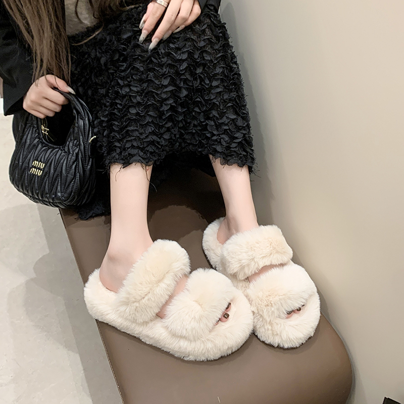 毛绒棉拖鞋 踩屎感毛毛拖鞋 ins潮网红爆款 韩版 秋夏 女外穿2024新款