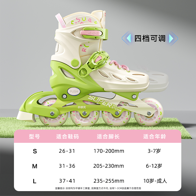 女童男童6 儿童溜冰鞋 12岁专业初学滑冰旱冰直排轮L5 轮滑鞋 小状元