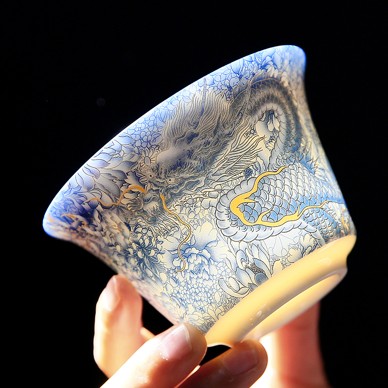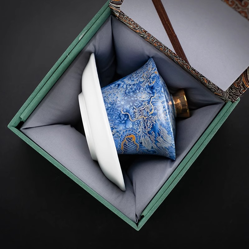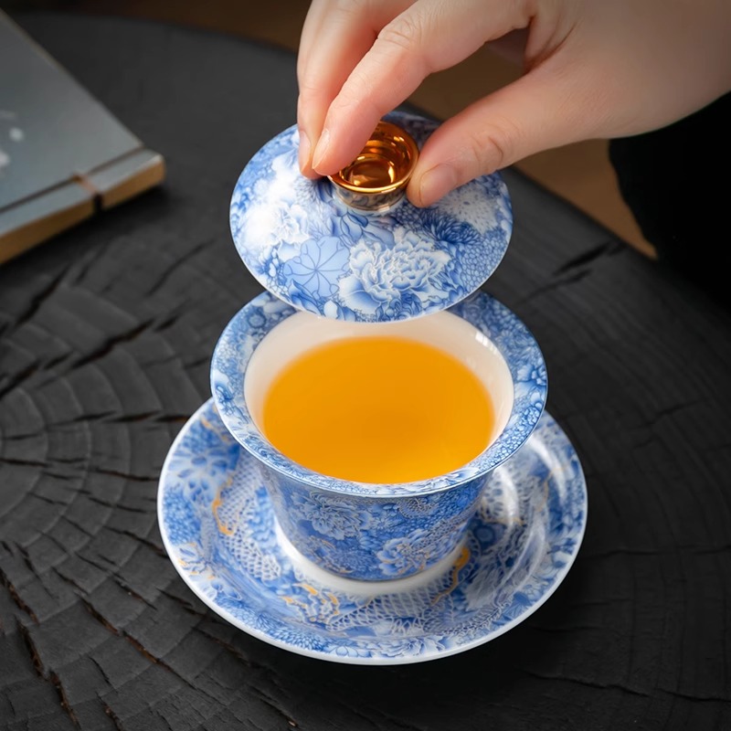网红可悬停盖碗三才青花单个高档白瓷家用泡茶碗可旋转带盖子茶盏