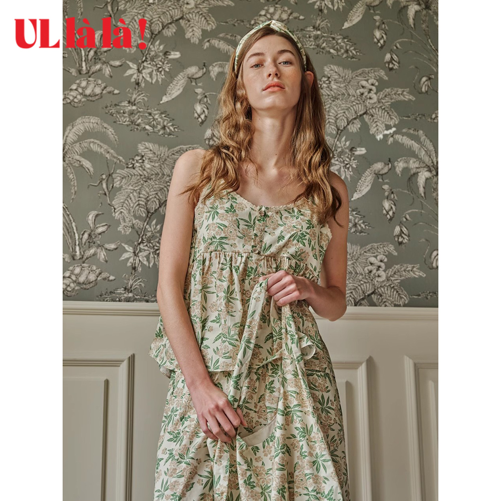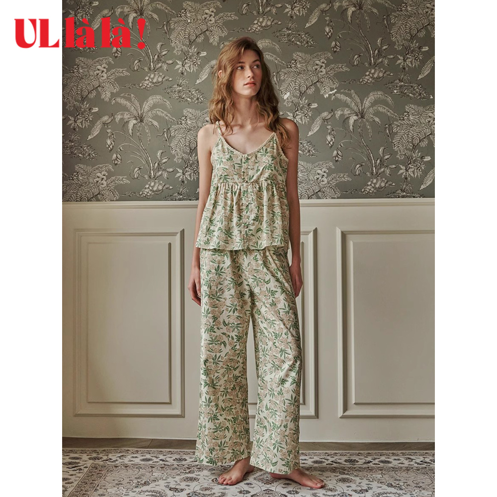 家居服吊带长裤 胸垫阔腿长裤 套装 薄款 碎花纯棉夏季 ULLALA韩国女款