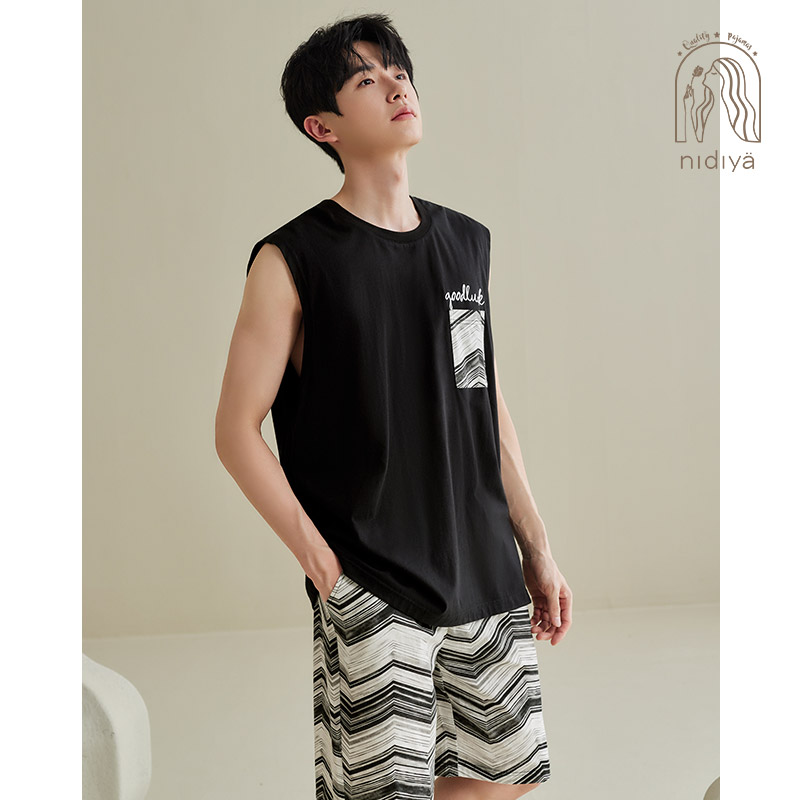 可外穿家居服套装 妮狄娅夏季 休闲背心短裤 睡衣女纯棉男士 情侣薄款
