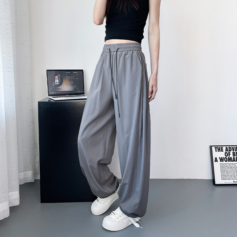 宽松显瘦阔腿裤 垂感冰丝灯笼裤 女夏季 胖mm高腰抽绳休闲裤 新款 大码