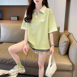短袖 女装 t恤女夏季 宽松大码 设计感小众华夫格上衣 韩版 翻领polo衫