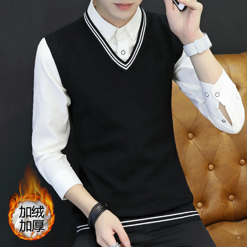 2024秋冬季 百搭背心毛线衣服 毛衣马甲男加绒加厚保暖V领坎肩无袖