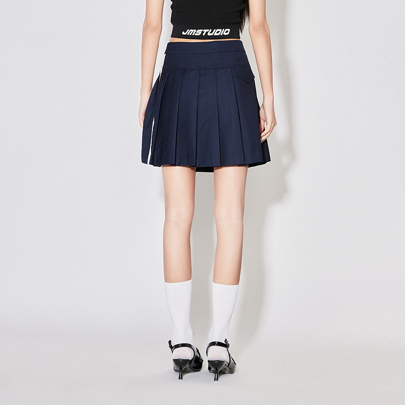 Jamor藏青色半身裙女2025春秋冬新款 通勤学院简约百褶裙加墨 时尚