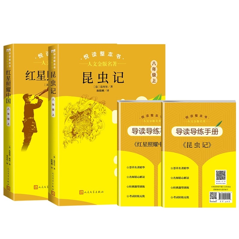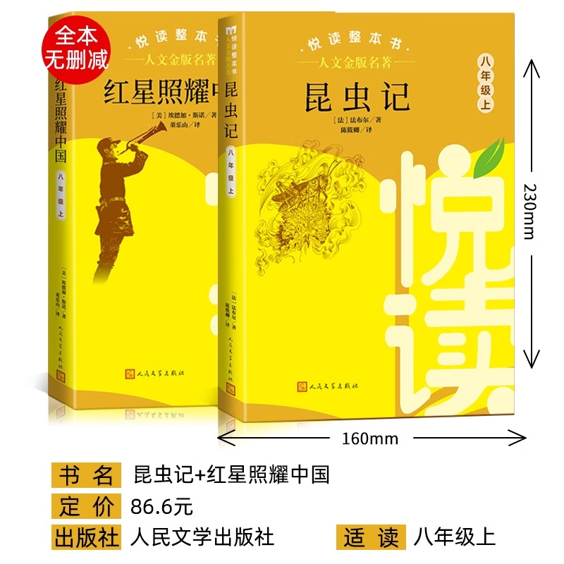原著完整无删减初中统编语文配套阅读8年级上人民文学出版 红星照耀中国八年级上学期2本悦读整本书正版 社书籍 名著昆虫记 人文金版