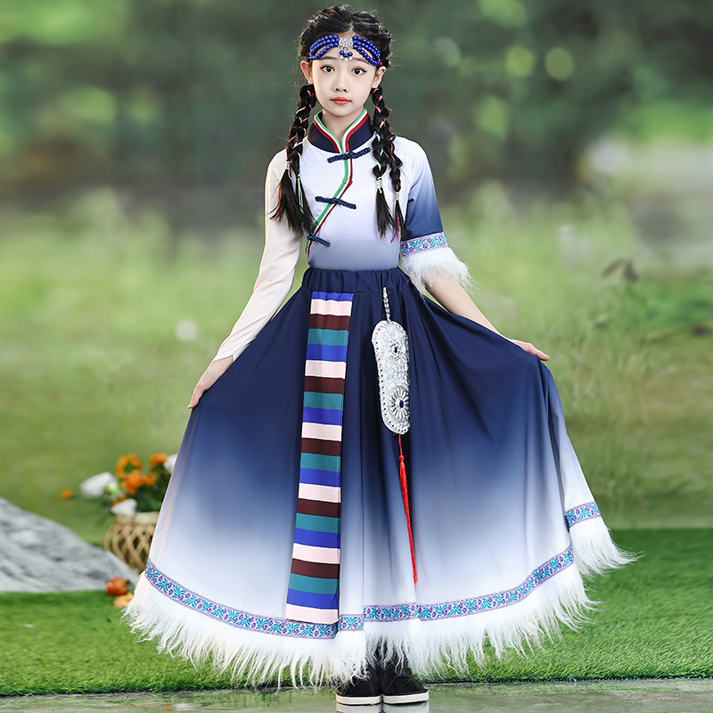 藏族舞蹈儿童演出服新款 渐变色藏服民族风女童表演服半身裙大摆裙