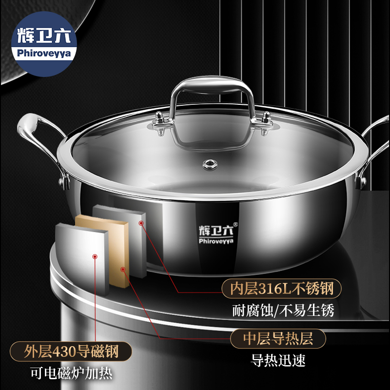 特厚316L不锈钢食品级汤锅燃气电磁炉双耳蒸煮炖带蒸屉家用火锅锅