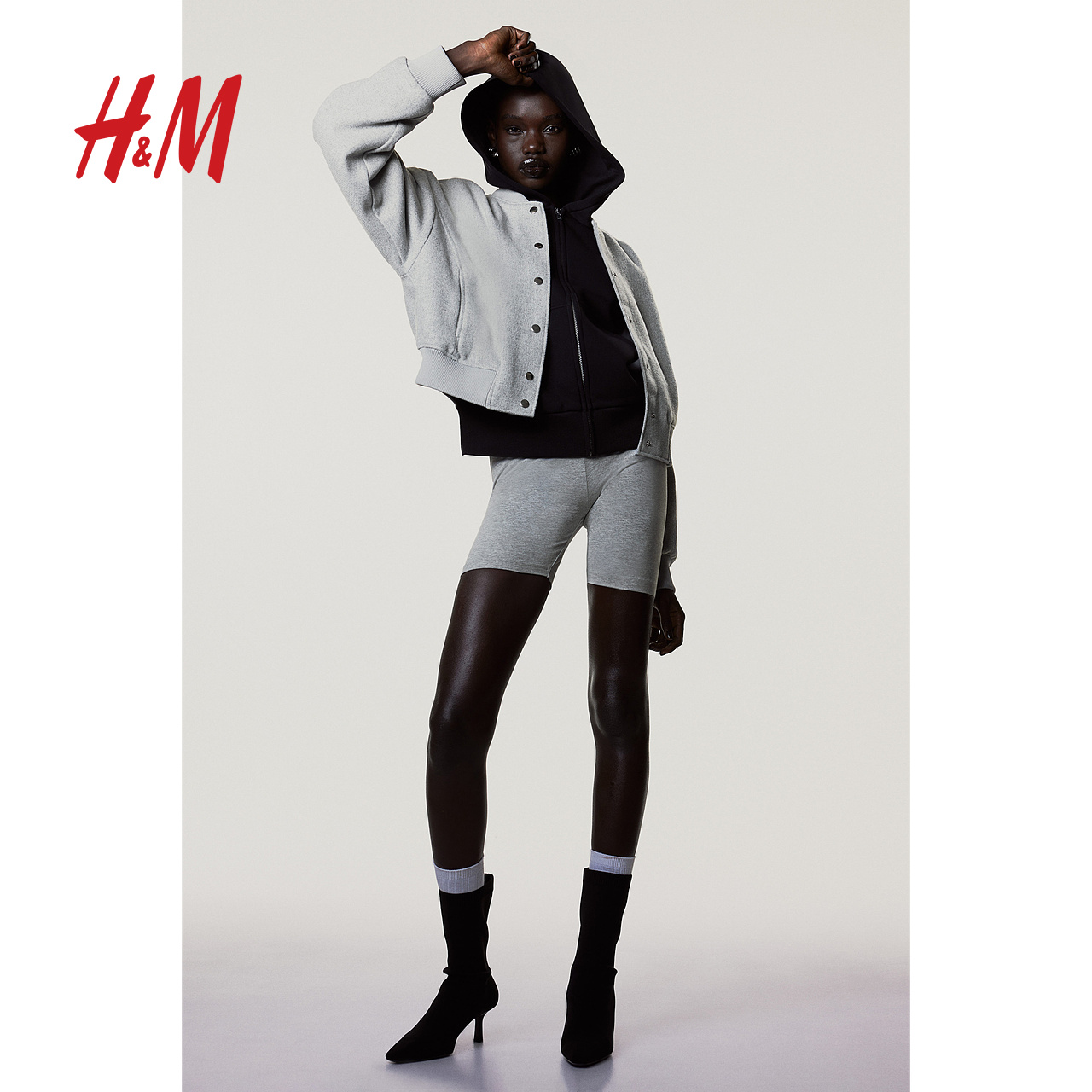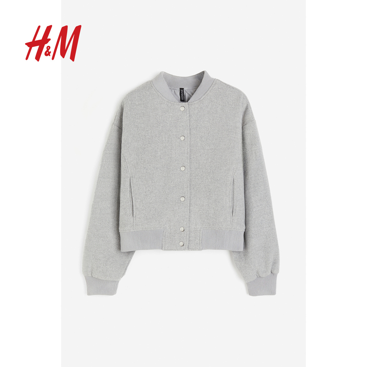 HM女装 宽松罗纹毛毡格雷系飞行员夹克1209974 短外套秋季