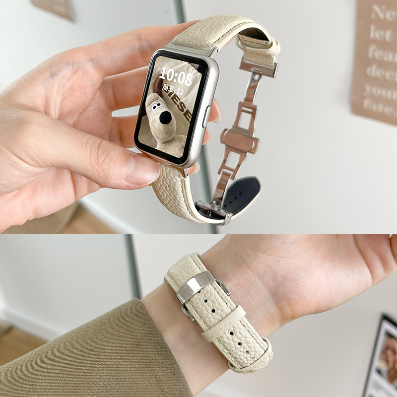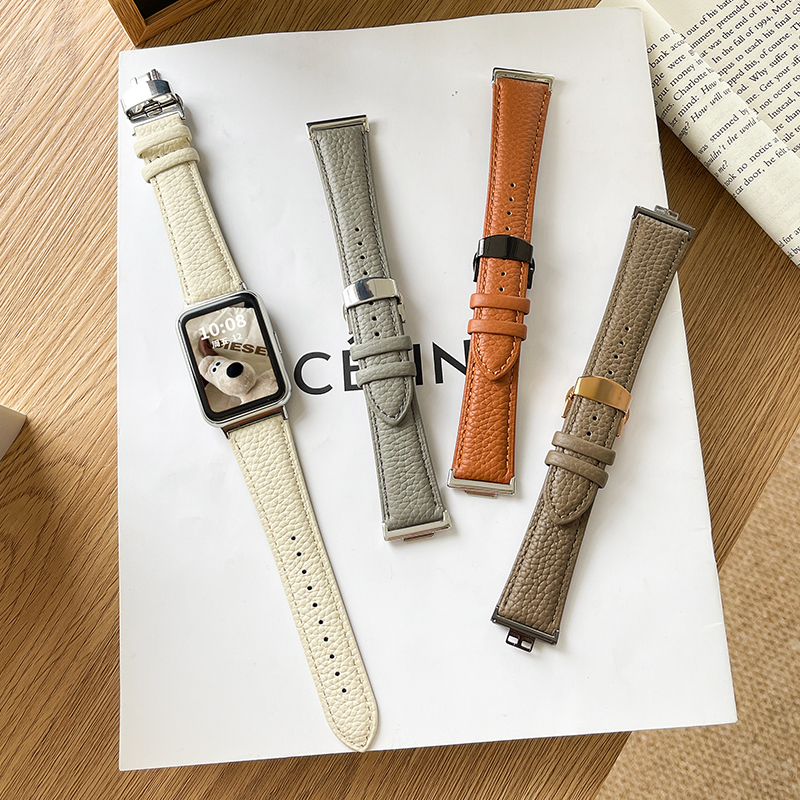 适用小米手环8pro手表带链夏天9pro智能运动手表8por手腕带新款 5真皮荔枝纹redmiwatch4红米watch4女生替换带