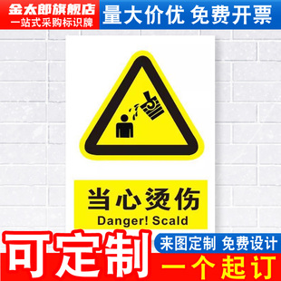 当心烫伤标识牌注意小心机器机械设备操作安全警示工厂车间警告标示标志牌标语贴纸提示贴墙贴指示牌子定制DX