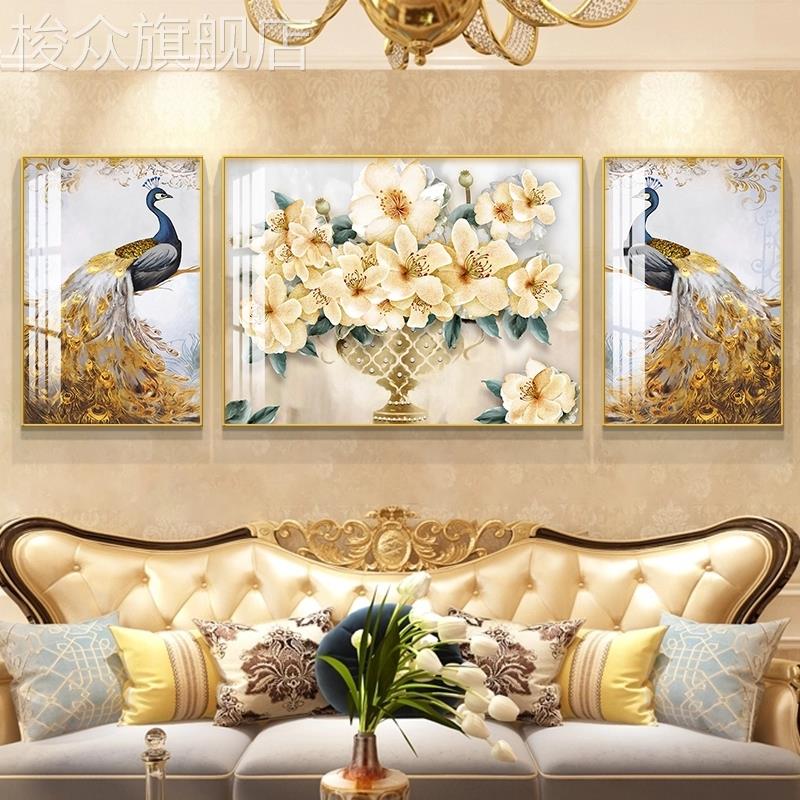 欧式 饰画轻奢大气沙发背景墙壁画现代简约餐厅孔雀招财挂画 客厅装