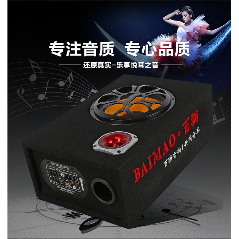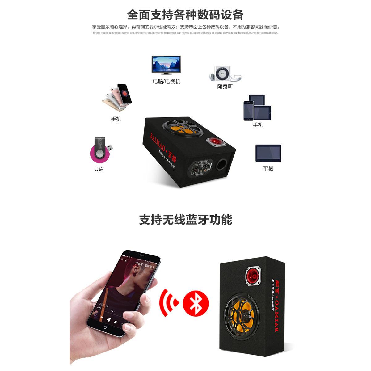 百猫车载低音喇叭汽车音响12V24V机车蓝牙重低音货车改装 圆筒音箱