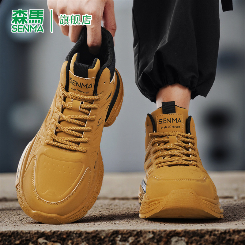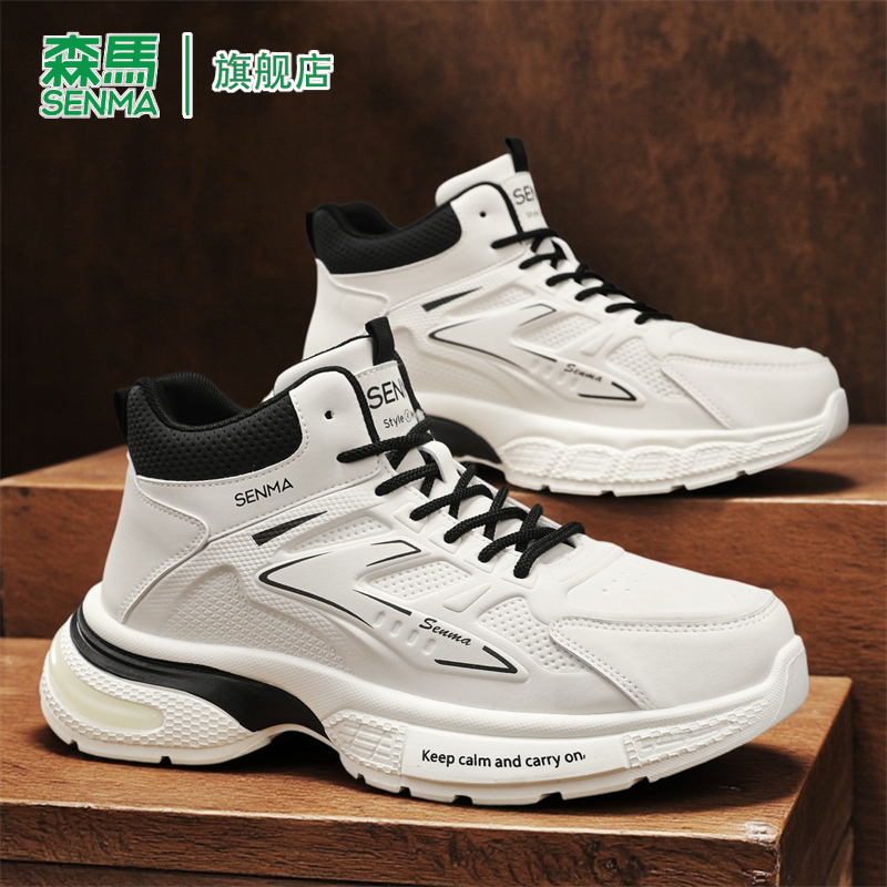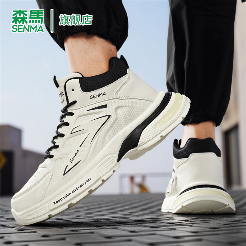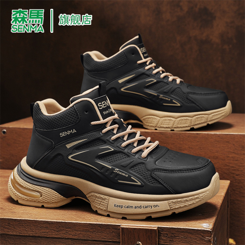 新款 2025秋季 时尚 百搭软底真皮韩版 森马高帮鞋 潮流休闲老爹鞋 男款