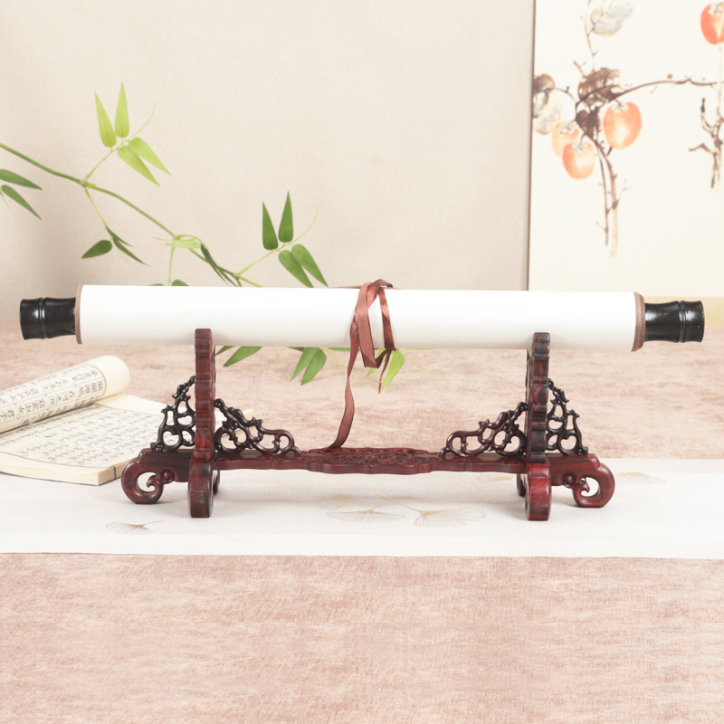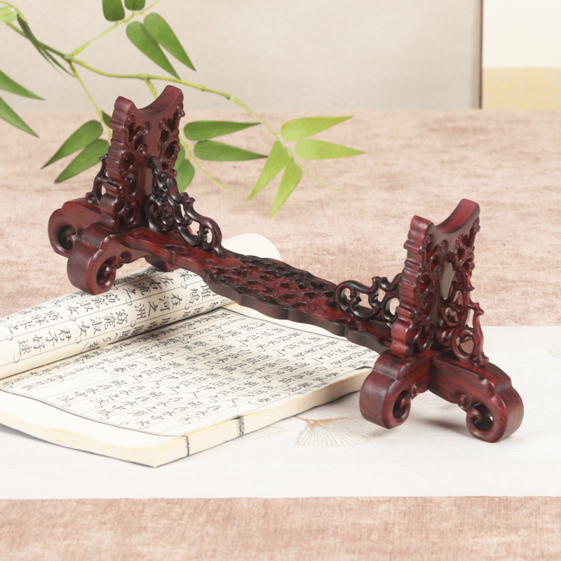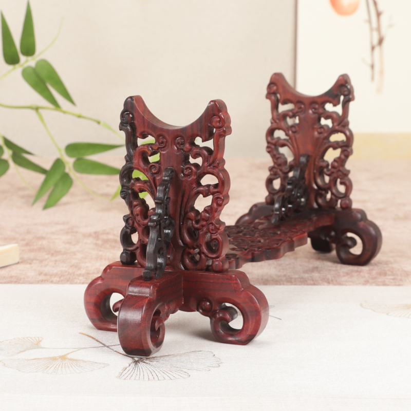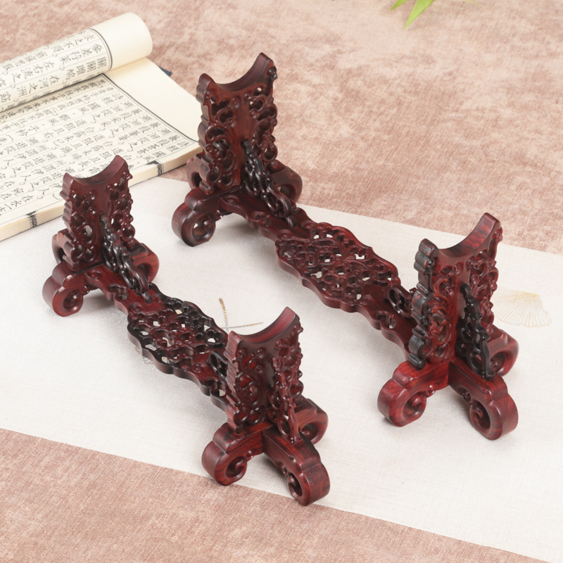 红酸枝黑檀刀剑架象牙底托 精品木雕刀架 红木工艺品如意架牛角架