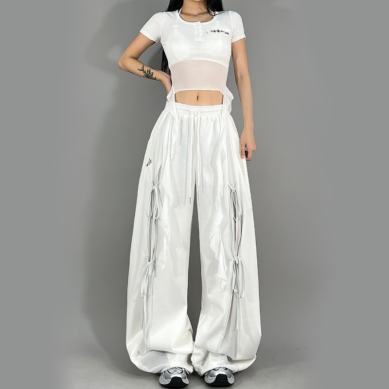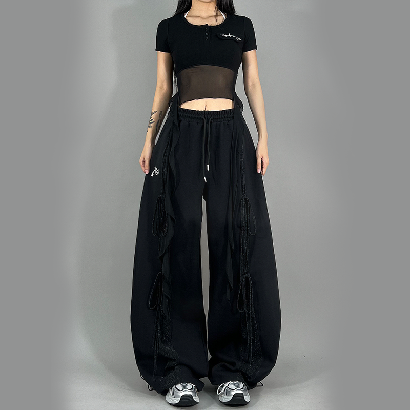 ROKBBK 女 K布韩街舞潮牌绑带银纱拼接爵士舞设计感休闲裤