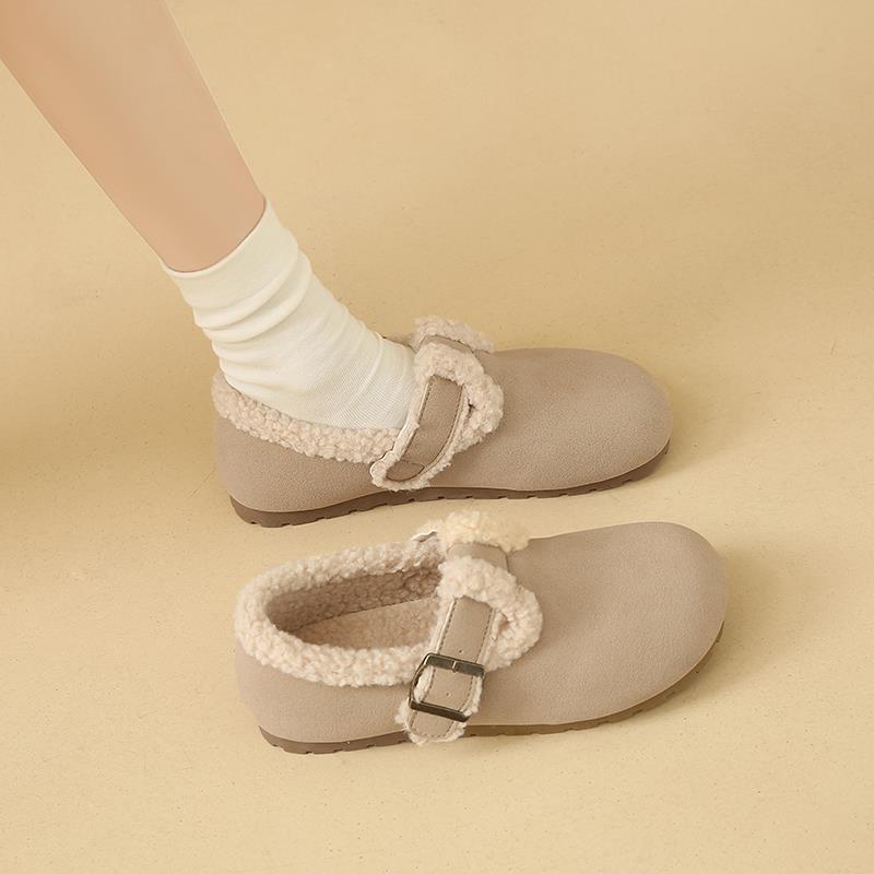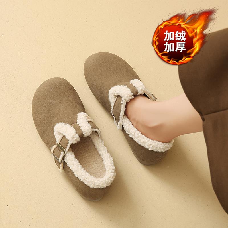 1004z 外穿乐福豆豆鞋 秋冬勃肯鞋 女2025加绒保暖一脚蹬孕妇毛毛鞋