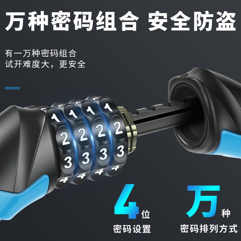 山地自行车密码 锁防盗钢丝锁电动电瓶摩托车环形链条锁头儿童单车