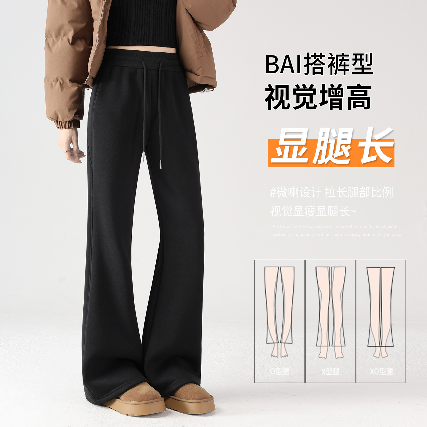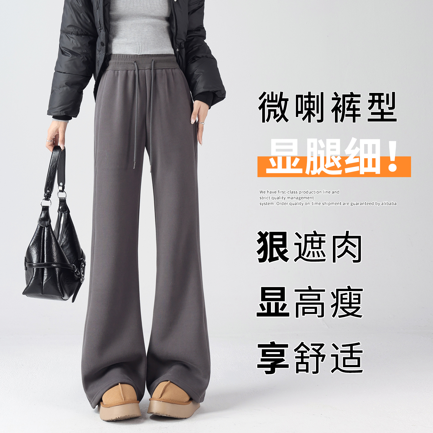 卫裤 藏青色加绒微喇叭裤 女士美式 休闲运动裤 子女秋冬2025新款
