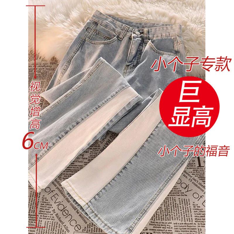 子高街ins 宽松拼接设计感阔腿裤 速发正品 145小个子高腰直筒牛仔裤