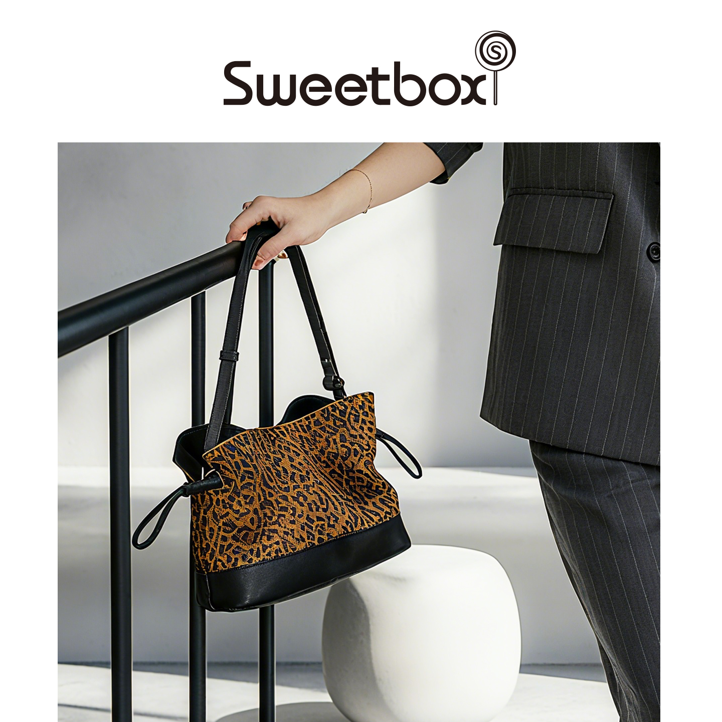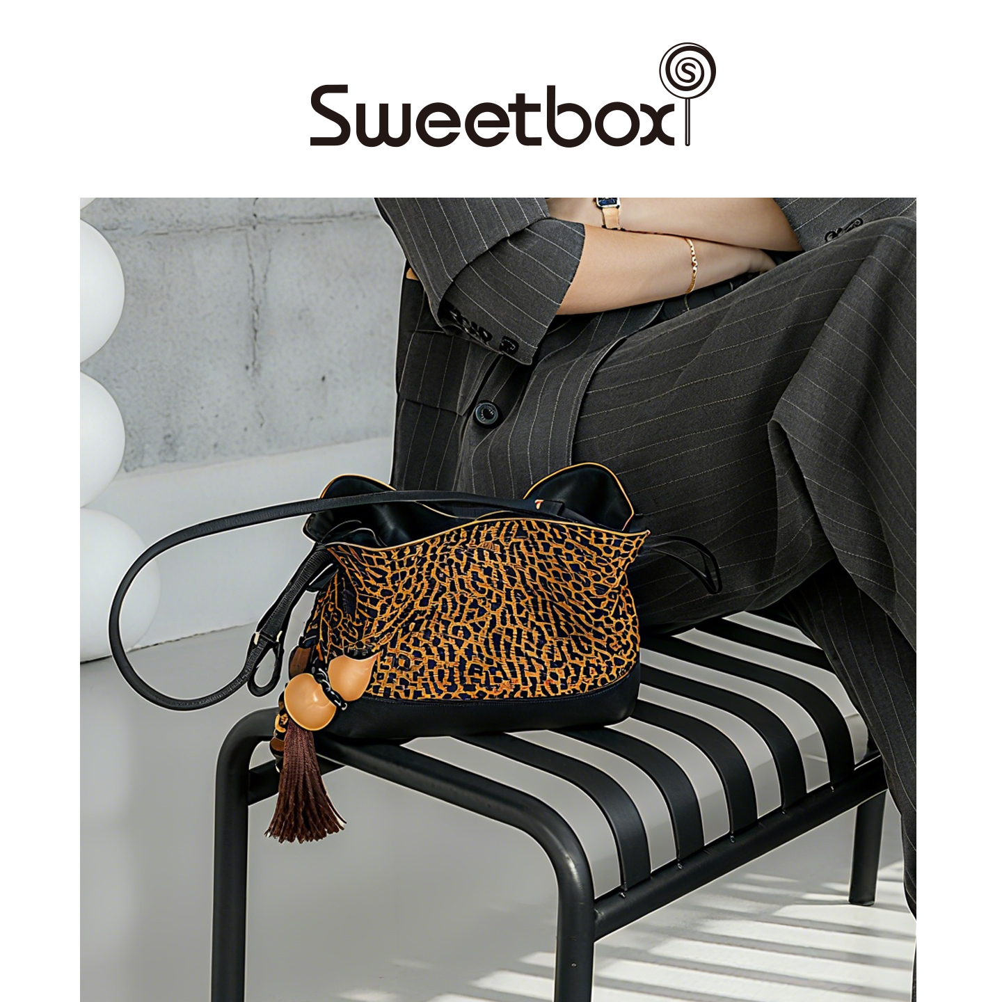 Sweetbox小众豹纹牛皮腋下包女士单肩斜挎包高级感托特包潮hobo包