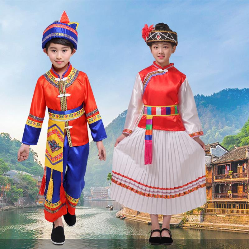 儿童民族服装 普米族女童舞台演出服纳西族傈僳族白族少数民族服装