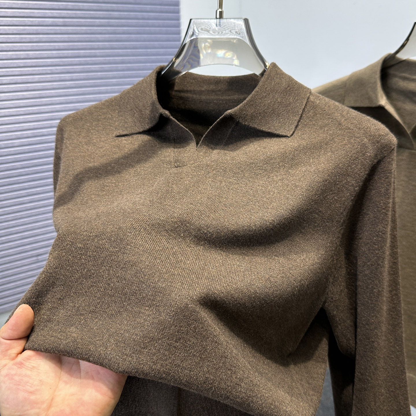 纯色内搭上衣服潮 休闲翻领针织polo衫 海鸥领毛衣男秋冬季 青年男装