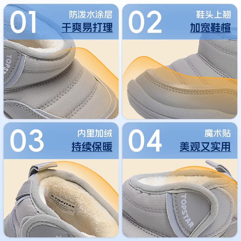 女童雪地靴男童保暖宝宝棉鞋 TOPSTAR儿童雪地靴新款 冬季